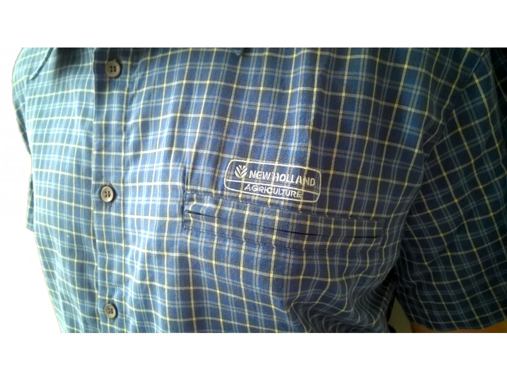 s logem New Holland a ovětráváním v zadní části košile