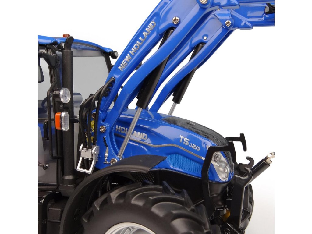 New Holland T5.120 se skládá ze 166 kusů a 215 operací tampotisku. Tato verze s předním plněním je zcela nové nářadí založené na novém modelu T5 od New Holland. Pneumatiky jsou z měkkého PVC materiálu. GPS je vyrobeno v samostatné části. Přední světla, zadní světla a výstražná světla jsou rozdělena na samostatné části. Vnější zrcátka jsou skládací. Přední a zadní táhlo je velmi detailní a třetí bod vzadu je nastavitelný. Všechny nápisy na kapotě jsou tampotisknuté. Schody jsou vyrobeny v samostatných částech a jsou pěkně gravírované. Interiér kabiny je velmi detailní (palubní deska, převody, sedadlo...). Všechny dráty předního nakladače jsou reprodukovány a nakladač je pohyblivý, stejně jako u skutečného traktoru. Jedná se o vysoce detailní odlitkový model v měřítku 1/32. Je to dokonalá replika nového T5.